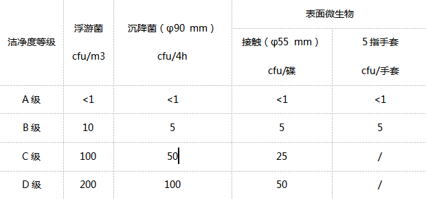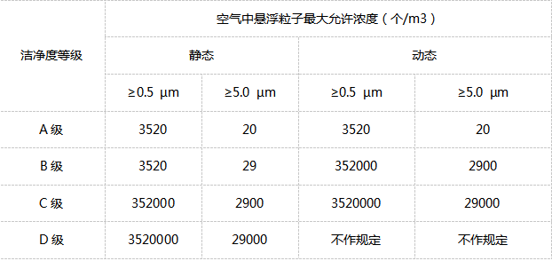 C級(jí)和D級(jí)用于無菌制劑加工過程中工序規(guī)定凈化較低的區(qū)域。C級(jí)靜態(tài)和動(dòng)態(tài)分別為ISO 7級(jí)和ISO 8級(jí)。D級(jí)靜態(tài)為ISO 8級(jí)。